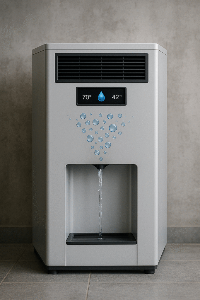 -Producción directa de agua potable desde el aire: convierte la humedad ambiental en agua pura mediante condensación controlada.